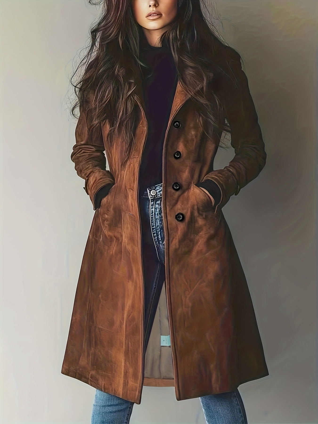 This New Long Coat Is an Elegant Women'S Trench Coat for Autumn And Winter, Designed to Be with a Solid Color And Tailored Fit. It Is Machine Washable And Versatile for Outings And Evening Events.